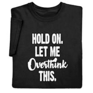 Note: The “overthink” shirt is, I believe, is from Signals.com, which offers a cornucopia of shirts with different themes.
